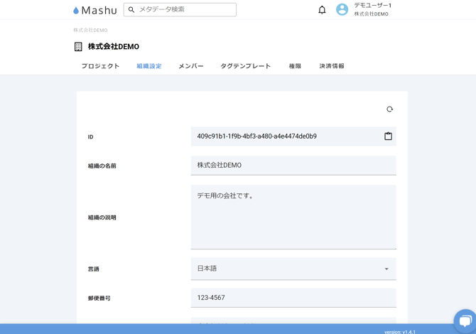 APIリクエストに必要な組織IDやメタデータIDは各設定画面のID欄からコピーできます。