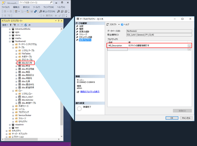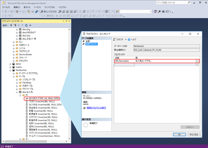 カラムの拡張プロパティにある情報をMashuで取得することができます。