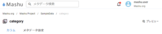 メタデータと関連するデータベースのデータの一部をプレビューして、メタデータ利用目的の参考にできます。プレビュー機能はメタデータ詳細画面の「プレビュー」ボタンから実行できます。
