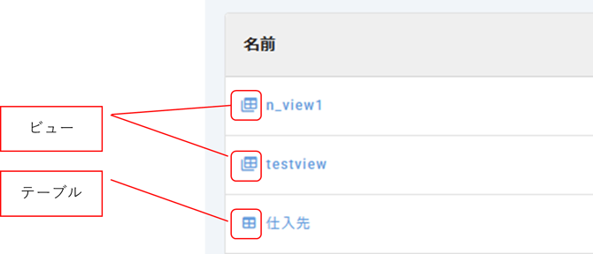 ビューのアイコンは、テーブルのアイコンと異なっていますので、取得したメタデータがビューなのかテーブルなのかをすぐに確認することができます。
