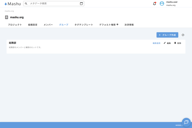 Mashuでは、ユーザーをまとめたグループを作って権限を一括で適用できます。