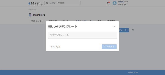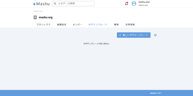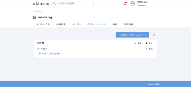 組織画面のタグテンプレートタブでは、組織で使用するタグのテンプレートを管理できます。