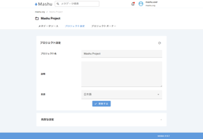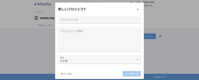 プロジェクト名、プロジェクトの説明、プロジェクト配下のメタデータを記述する言語の初期値を設定して、「作成する」ボタンを押します。言語は組織の言語が初期値となりますが、プロジェクト毎に変えることもできます。