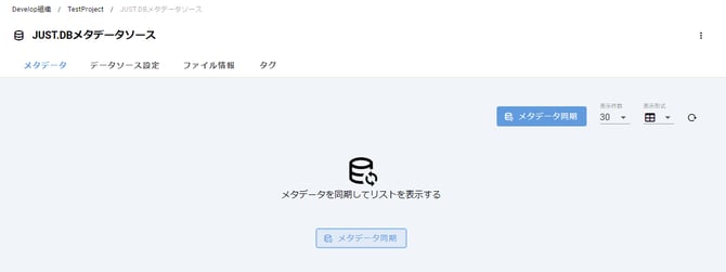 2. メタデータソースを作成するとメタデータソース詳細画面に遷移します。遷移先の画面内のメタデータ同期ボタンを押下してください。