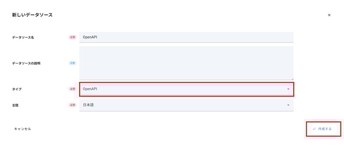 データソースのタイプを「OpenAPI」にしてデータソースを作成してください。