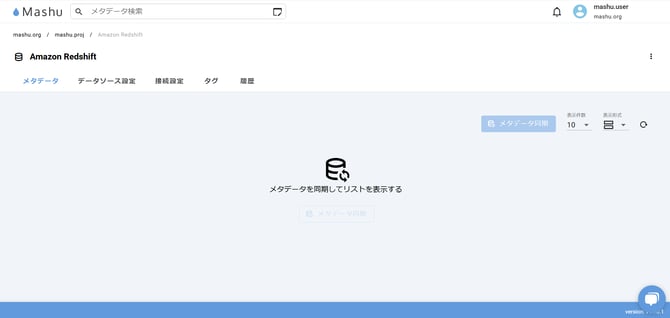 RedshiftからMashuへメタデータを同期するためには、Mashuサーバーのセットアップが必要です。Mashuサーバーのセットアップ方法は オンプレミス用のMashuサーバーを参照してください。