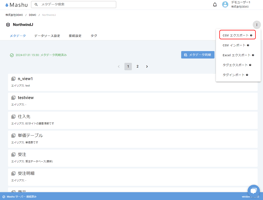 出力するメタデータから右上の三点リーダーを選択し、[Excel エクスポート] をクリックします。