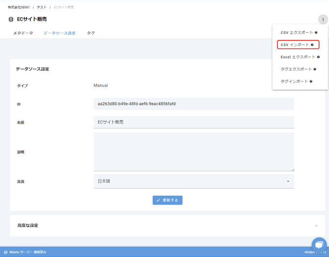 Mashuは、ローカルにあるデータをインポートして利用したり、データベースにつなぐ事ができない時など、CSVファイルの形式でインポートして利用することができます。