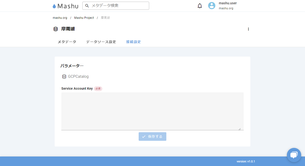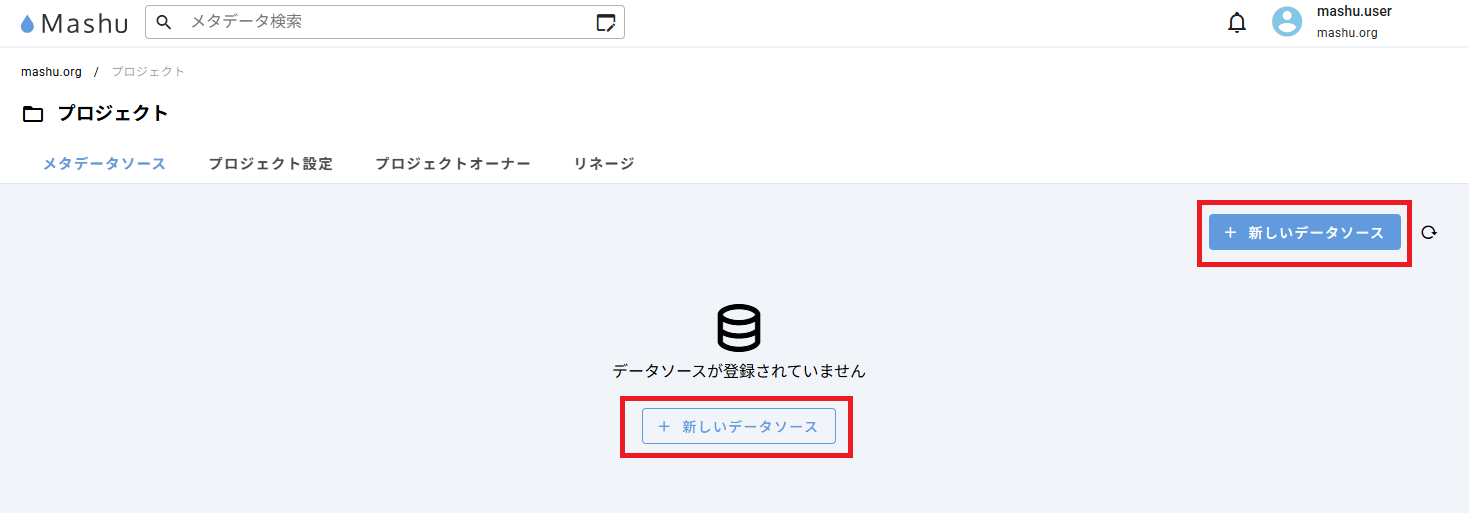 Mashuのデータ構造は、組織の下にプロジェクトがあり、プロジェクトの下にメタデータソースがあります。メタデータソースは、データを管理するシステムの単位に作ります。
