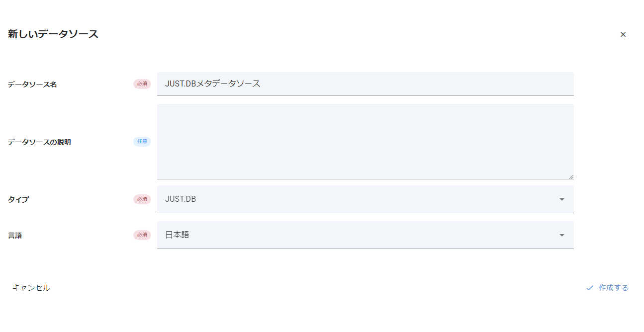 メタデータソース画面のデータソース設定タブでは、メタデータソースを作成した際に指定した項目を参照することができます。また、メタデータソースが接続するデータを管理するシステムの種別であるタイプ以外は変更...