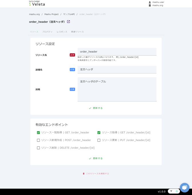 - 論理名: リソースについて分かりやすい名前を設定できます。論理名はOpenAPIドキュメントにも表示されます。